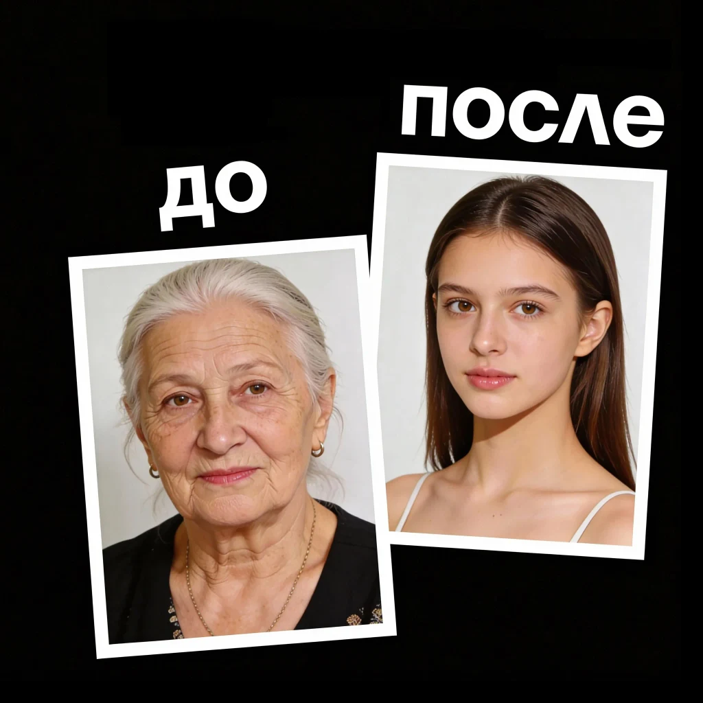 Реконструкция внешности в возрасте 18 лет с сохранением идентичности. Меняется только возрастная динамика кожи, плотность тканей и тонус, но остаются узнаваемые черты, пропорции и выражение. Результат выглядит как реальная версия человека в начале взрослой жизни, а не цифровая ретушь.