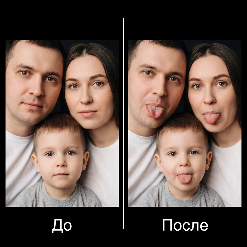 Легендарная дерзость Эйнштейна, но в исполнении людей с загруженного фото. Высунутые языки, искреннее безумное выражение лица, ощущение пойманного внезапного момента. Не карикатура, а живая эмоциональная провокация.